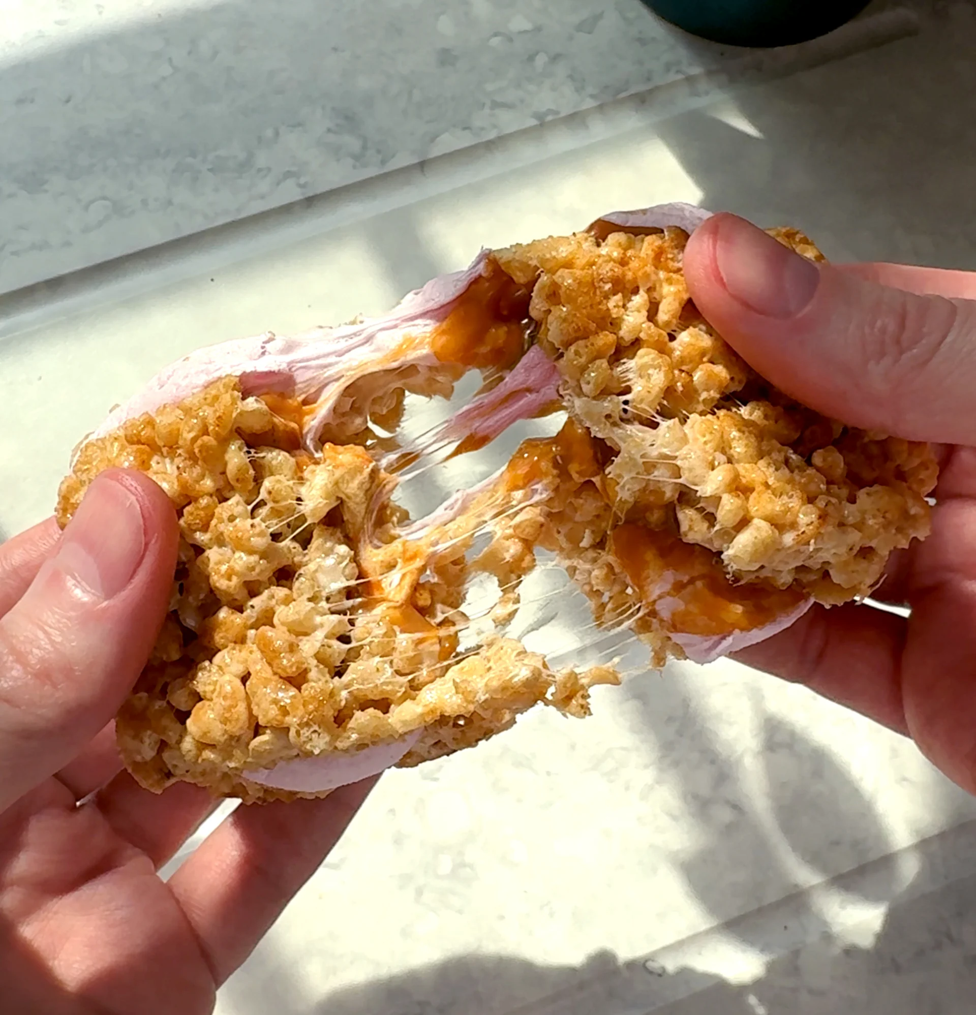 Rice Krispie Squares are great, but they're extra tasty once you air-fry them! Top with melted Marshmallow and a large helping of Dulce de Leche and you have the perfect treat.
