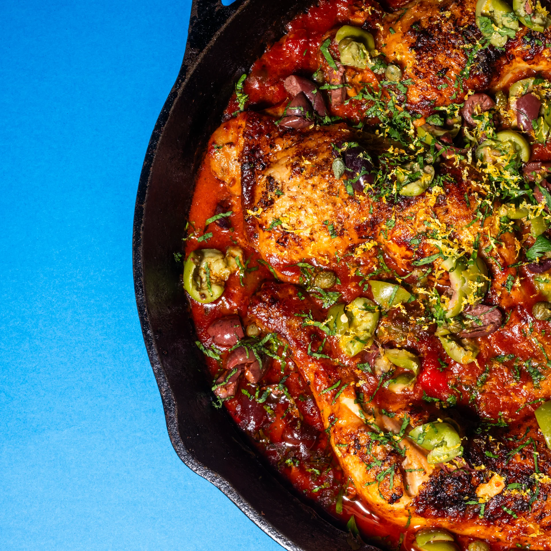 Introducing our Puttanesca Chicken - a hearty, fulfilling dish, seasoned with all things salty – anchovies, olives and capers, all mixed into a plum tomato sauce. This really is the perfect home to nestle perfectly baked chicken. Serve with mash or crispy bread for dunking and you've got yourself a lovely meal.