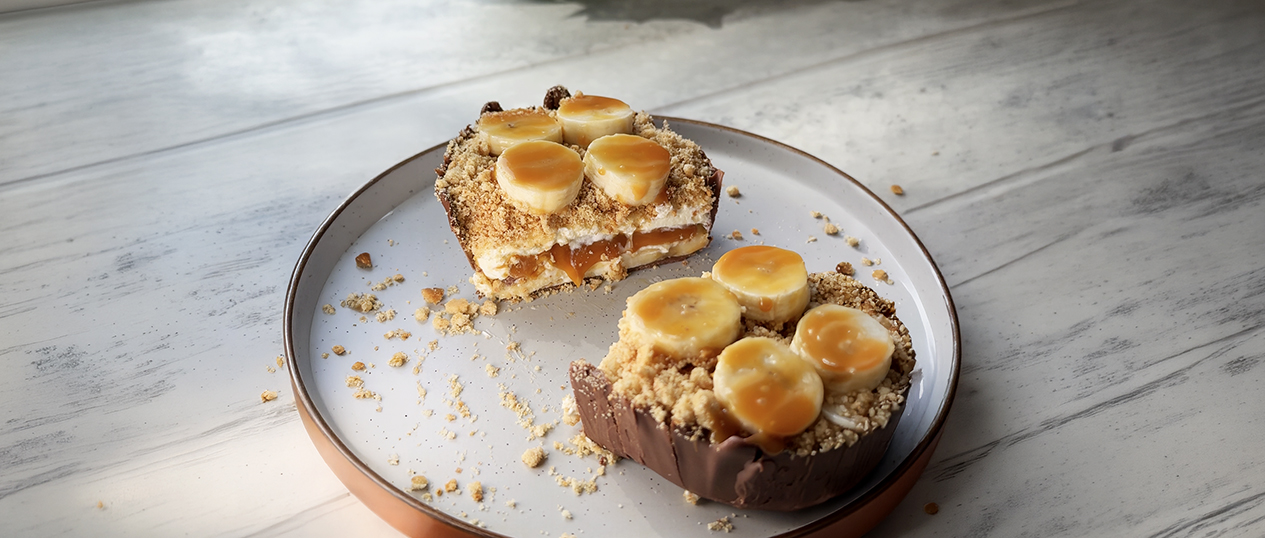 Not only does this recipe call for a whole tub of cream cheese, but more importantly you use the tub too! Once dipped in chocolate you have the perfect edible vessel for these banoffee boats, filled with layers of banana, caramel and heaps of creamy cheesecake cream.