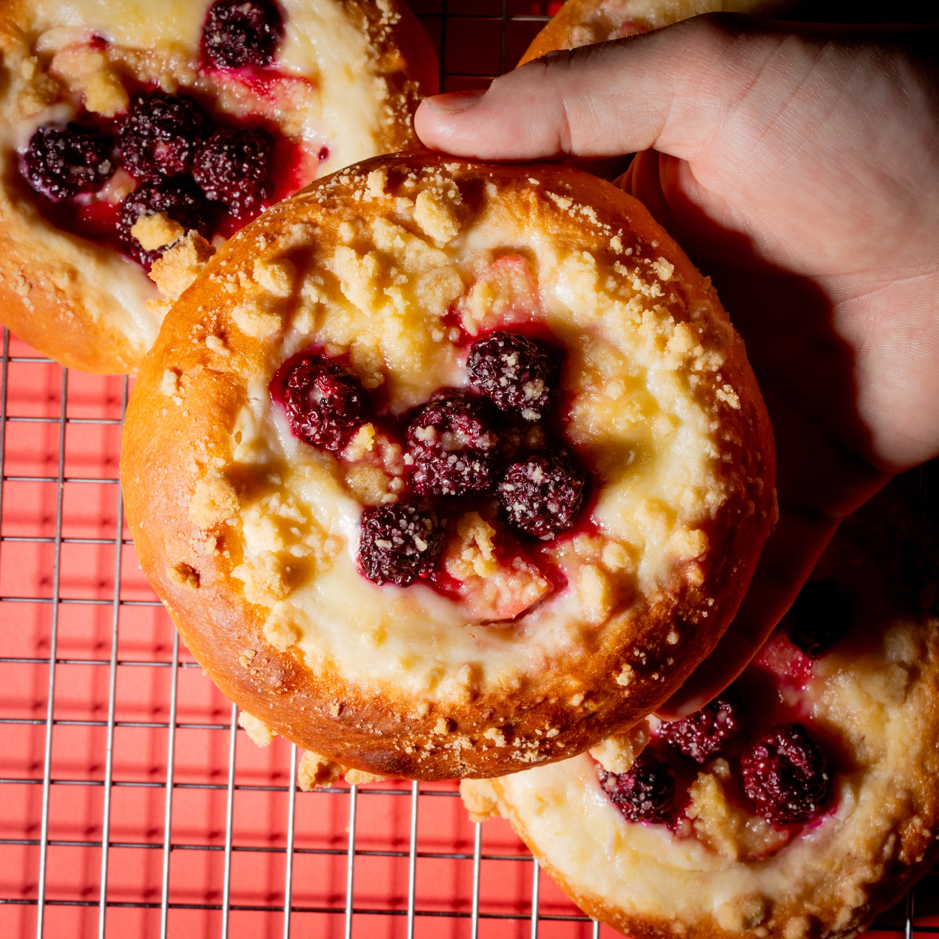 The flavours are big in this recipe. Juicy, sweet fruit, soft, tangy-sweet cheesecake, crunchy crumble topping, soft, billowy sweet brioche. Stop reading this blurb, and get making them. You won't regret it!