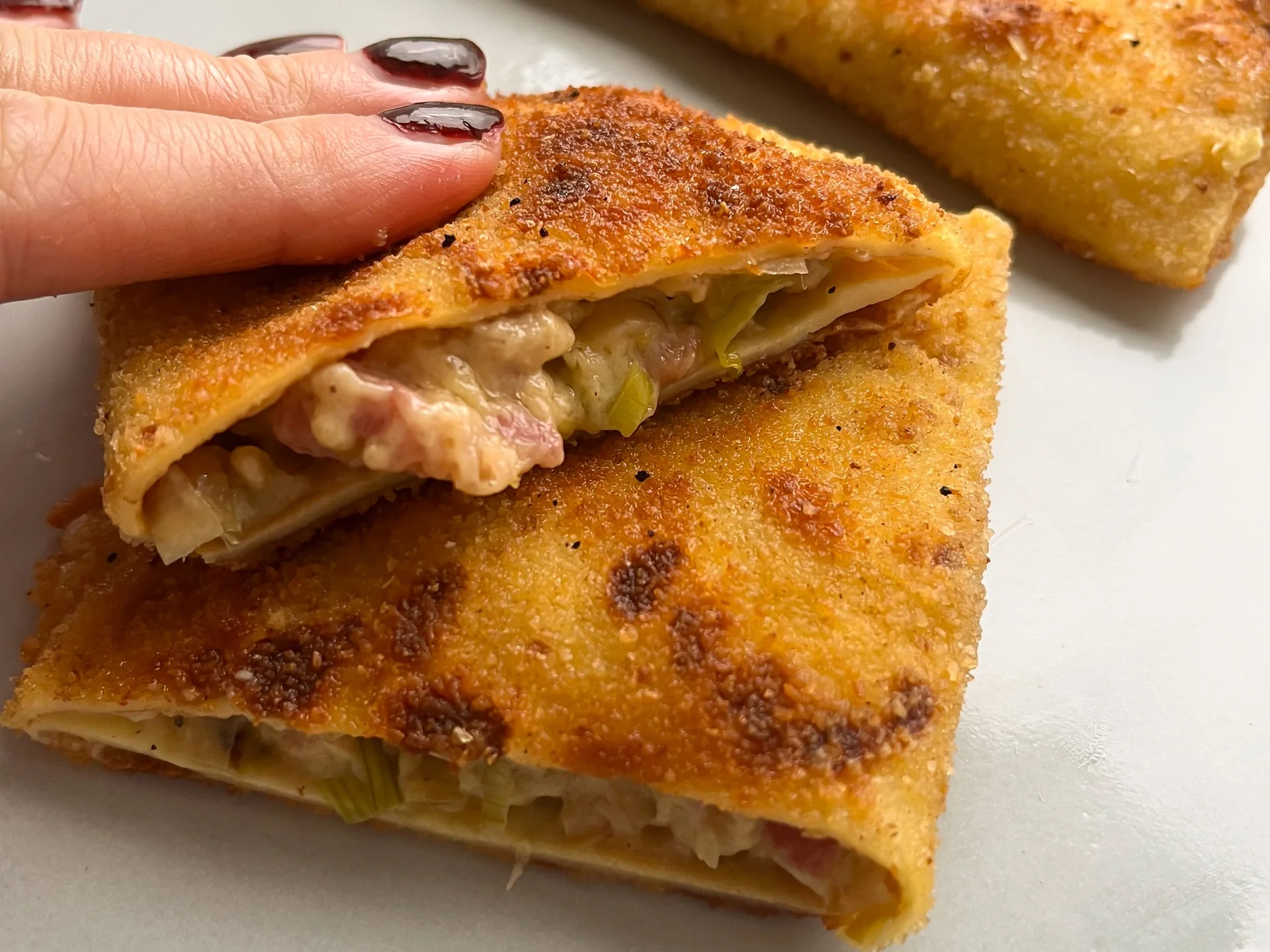Fry the pancakes in batches, just a few seconds on each side, until golden and crisp. You’re only crisping the coating, not cooking the middle - so don’t leave them in too long or they’ll burn.