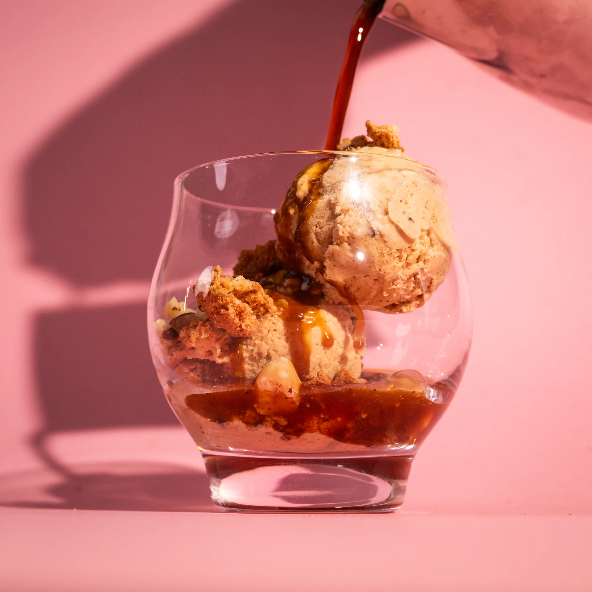Spoon a couple balls of ice cream into your favourite glass, pour over some hot espresso, and serve with our hazelnut and biscotti crumb.