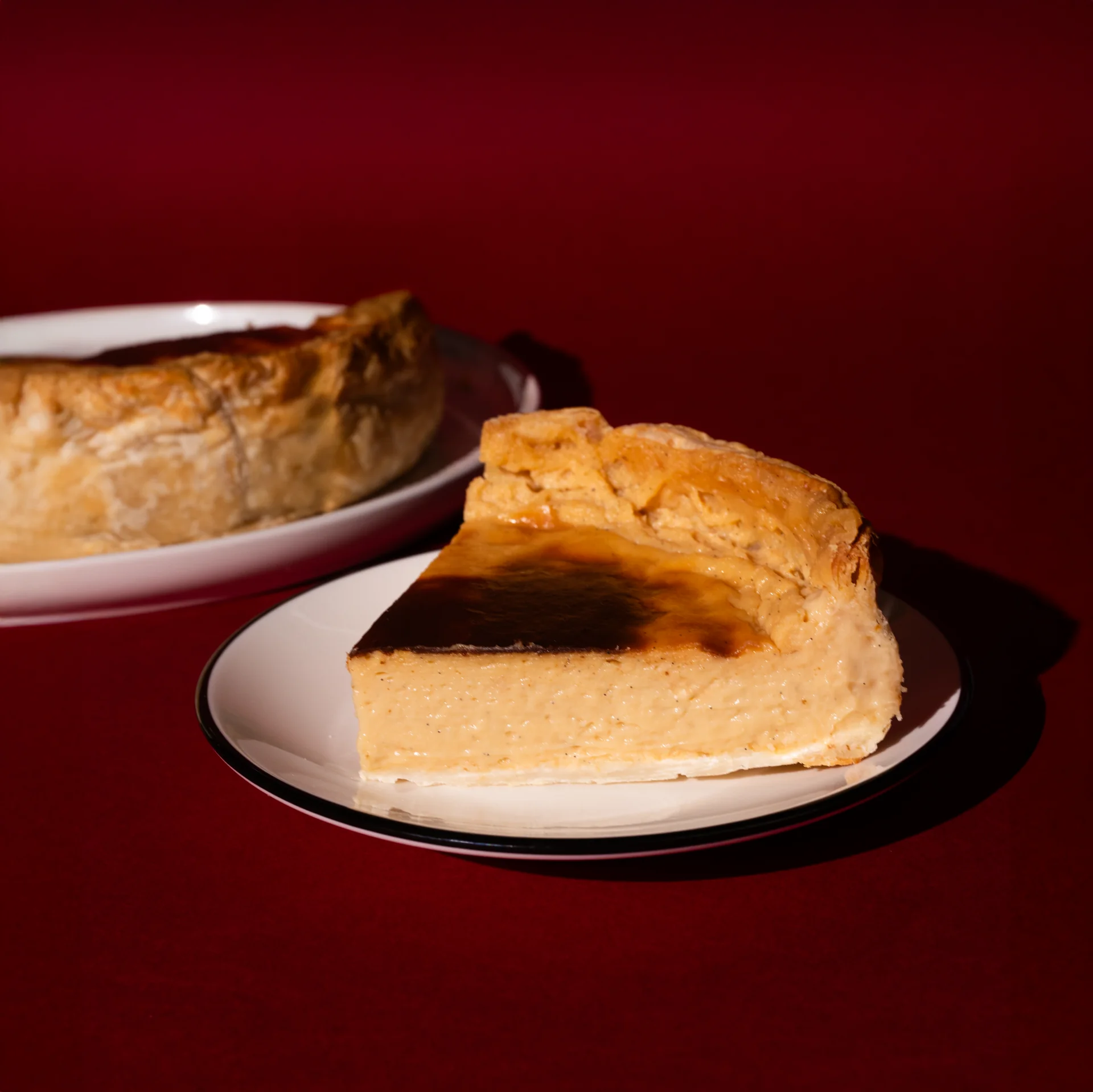 A thick and luxurious custard filling, all incased in a makeshift paratha crust! Yes, paratha's are more than just delicious sides to curry! We've made a blind-baked tart crust to pour our Pastel De Nata inspired custard into before baking and serving a large slice with a dusting of cinnamon.
