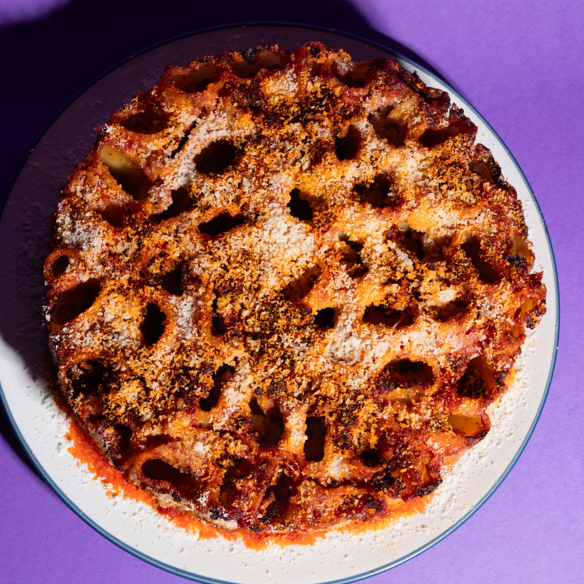The holes also provide crispy edges, aka the very best part of a pasta bake. The burrata on top gives a creamy, soothing finish that balances out the sweet spice of the hot honey. Overall, it's delicious and you need to give it a try.