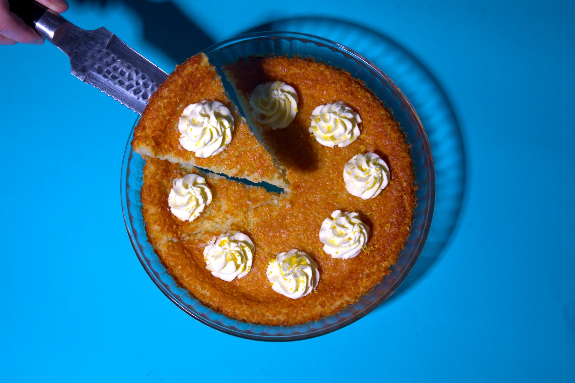 It goes into the dish a liquid but then bakes into a 3 layer pie?? What is this magic?! Something happens when you put this into the oven - out comes a creamy coconut custard pie that's formed its own crust! Sometimes you have to just trust the process.