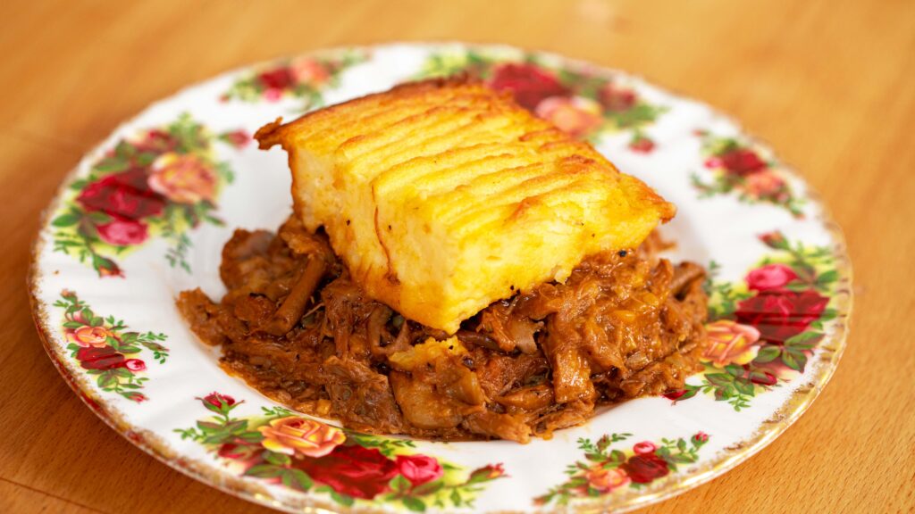 Using the new King of Britain's favourite ingredients (lamb, mushrooms, cheese and eggs), Chat GPT fashioned a semi passable recipe. Albeit one with an inexplicable layer of cheesy scrambled egg between the lamb mix. Substituting leftover roast lamb for the lamb mince, stirring a bit of flour into the mix and beating the eggs and cheese into the mash, we proved that although AI can serve up a passable dinner, it still needs a helping hand from us.