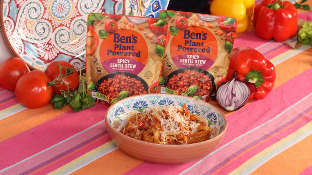 It only takes 2 ingredients to make this pici pasta, and with the Ben's spicy lentil stew sauce - this is a super quick, easy, plant based dish.