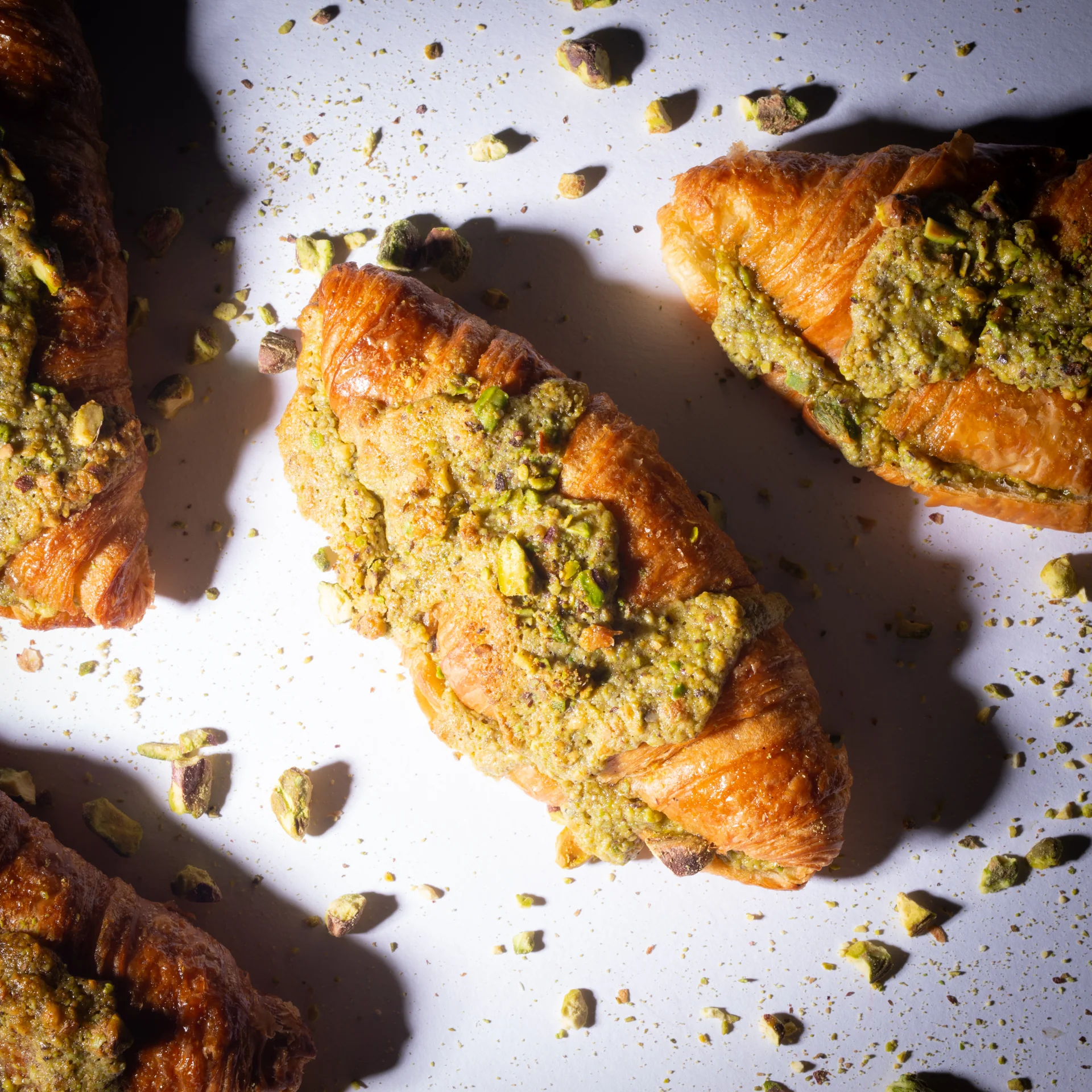 The pistachio croissant! Everything you like about an almond croissant, but made so much better. With a vanilla pistachio frangipane, and a baklava inspired glaze, this is the perfect twist on two of our favourite sweet treats!