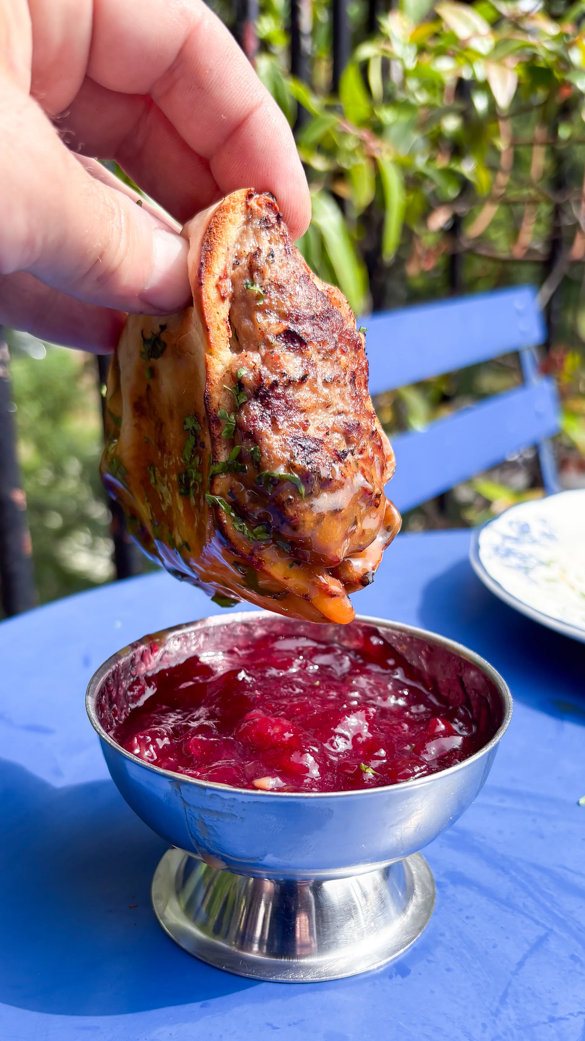 Serve them brushed with butter and sprinkled with parsley then dipped in the gravy and jam.