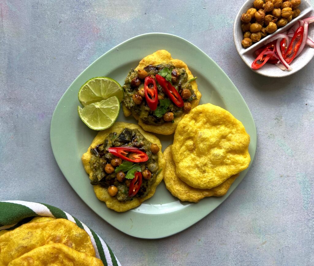 Crispy, soft, and chewy fried flatbreads (bara) are topped with creamy veggie-packed Trinidadian style callaloo, crispy roasted chickpeas, and pickled chillies. Flavourful, filling, AND it's vegan!